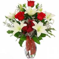Красно-белый букет, состоящий из роз и лилий – отличный способ выразить нежные чувства и подарить приятные эмоции любимой женщине. Красные розы означают любовь и страсть, а белые лилии – нежность, чистоту и отсутствие корысти. Букет поможет улучшить отношения с возлюбленной или просто обрадовать её в серый будний невзрачный день приятной игрой красок и запахов.